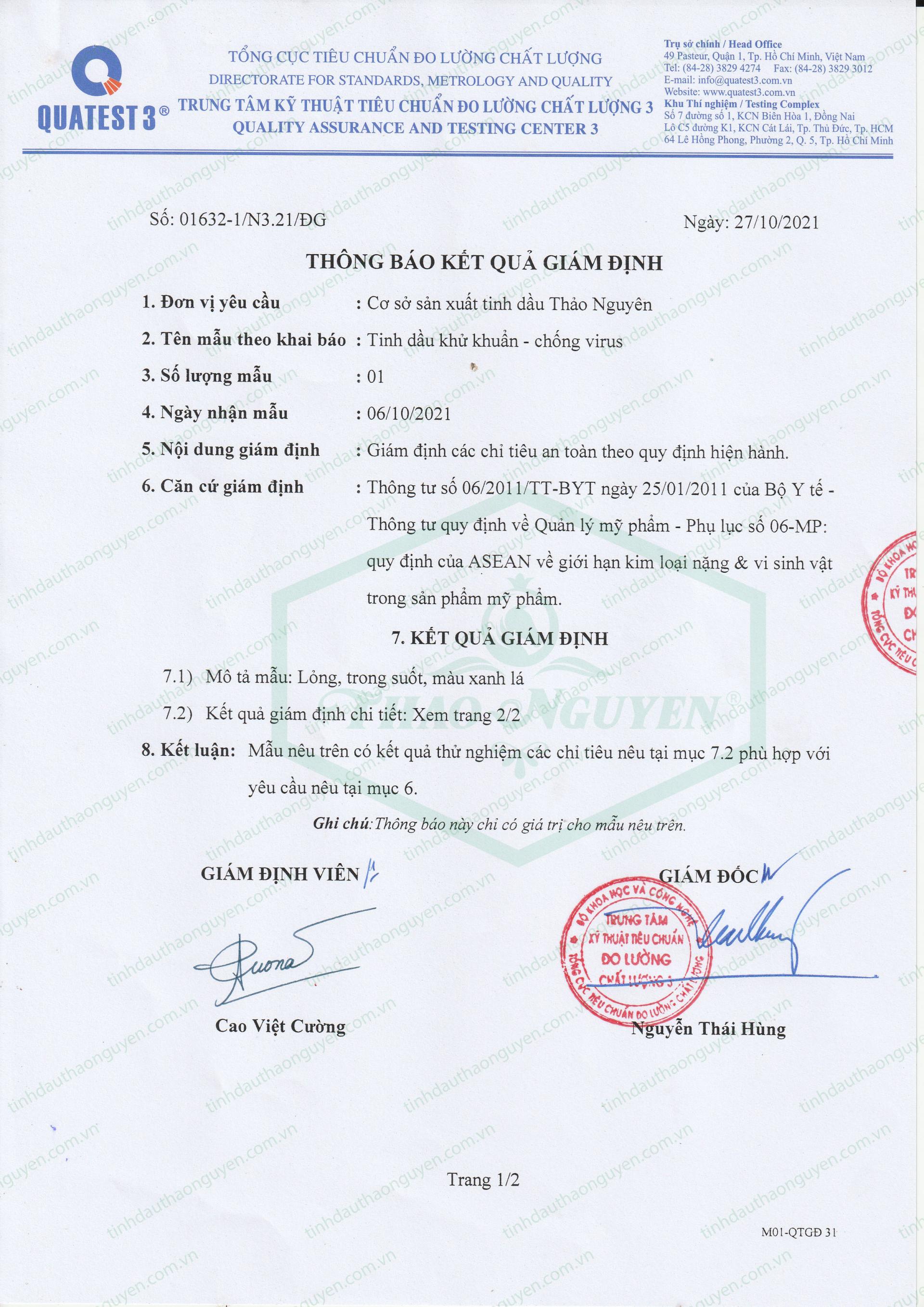 Các sản phẩm đều được vận hành theo tiêu chuẩn ISO 15189:2012 kiểm định qua Trung tâm kiểm nghiệm Quatest 3 trước khi lưu hành trên thị trường nhằm đảm bảo chất lượng tốt nhất cho người tiêu dùng.